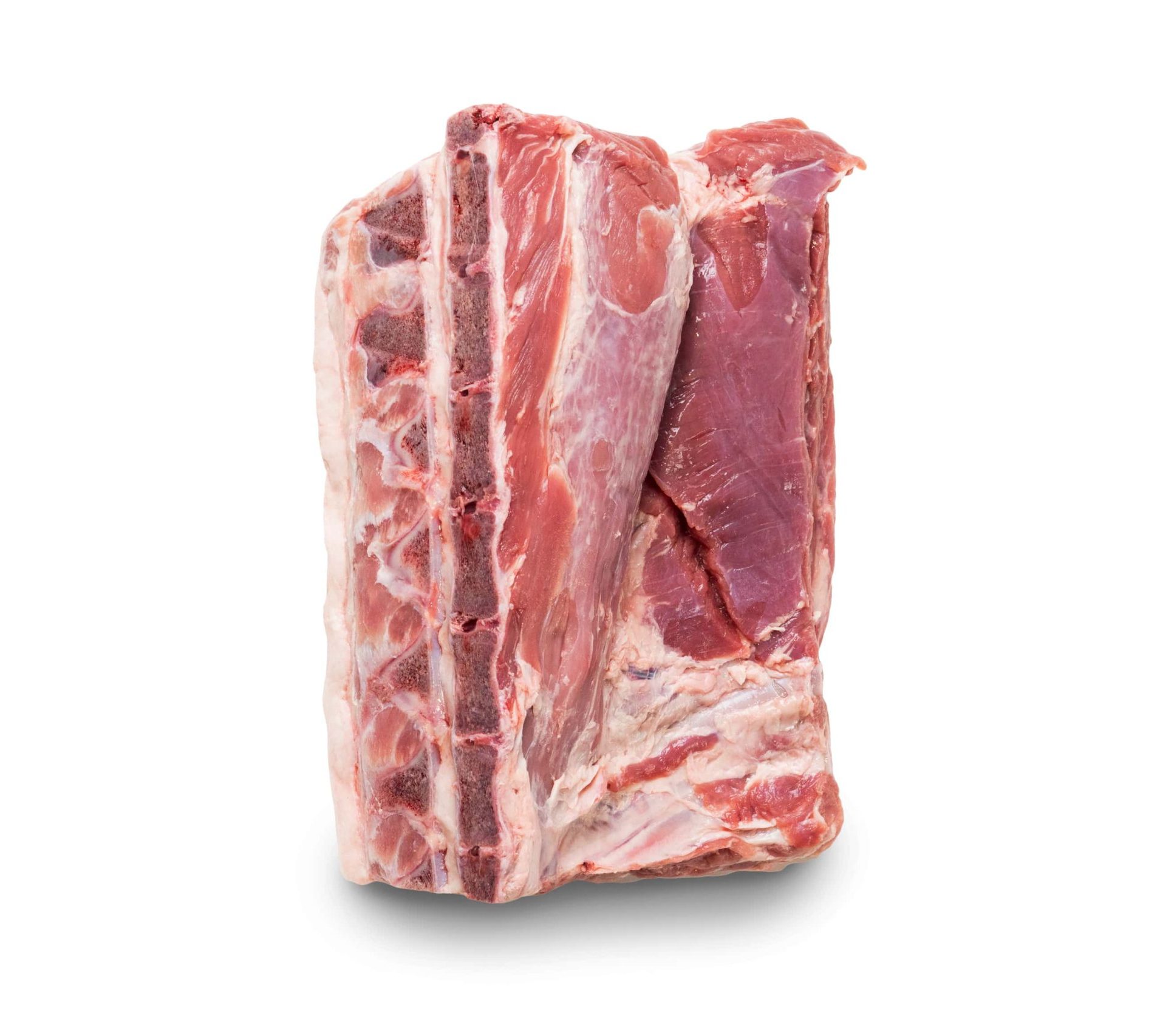 Mid loin bone in, rind removed, tenderloin attached, chilled individually vacuum packed.